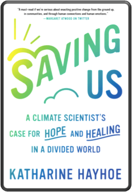 Hayhoe’s book, Saving Us: A Climate Scientist’s Case for Hope and Healing in a Divided World, marks the culmination of several decades spent thinking about talking about climate change. More communication handbook than scientific treatise, the text is neatly divided into five sections that build cumulatively on central themes—the persuasive importance of various audiences and identities, the limited potential of facts and evidence, the ubiquity and urgency of the exigence, the sense of empowerment attending the most promising policy solutions, and, finally, the importance of committing one’s own decisions, habits, and speech to rousing others to action. In her very popular TED Talk, Hayhoe declares that, given the relatively peripheral positioning of the climate discourse among other hot topics of the day, the most important thing that any individual can do to fight climate change is to talk about it. Her book explains in detail how to do this well.